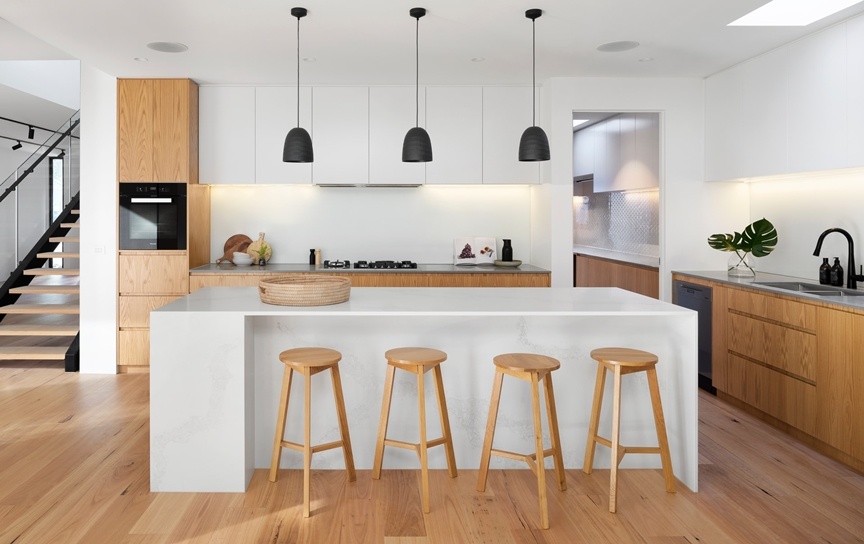 Resistentes al calor y al agua. Es un materia duradero, que no se raya, invulnerable a la acción de ácidos y productos corrosivos, fácil de mantener y disponible en una gran gama de colores. Es un material muy popular para encimeras de cocina. Se diferencia de las encimeras postformadas porque se pueden hacer todo tipo de formas y penínsulas/barras redondas o cambiar el grosor y hacer encimeras de hasta 10cm de grosor. Se da la posibilidad de usar granito o cuarzo para petos o frontales de cocina (para tapar azulejos antiguos sin hacer obra). Sólo tiene una desventaja: al ser un material poroso podría adquirir con el tiempo cierta coloración, algo fácil de evitar con una mínima limpieza. Aunque no es un recurso renovable, una encimera de granito puede durar toda la vida y se puede re-usar incluso después de dos o tres cambios de muebles de cocina.